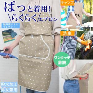 エプロン 前掛け おしゃれ 保育士 紐 無し ワンタッチ エプロン 着脱 簡単 ひも ヒモ なし 撥水 加工 服 キッチン 濡れない 便利 グッズ ナチュラル 可愛い