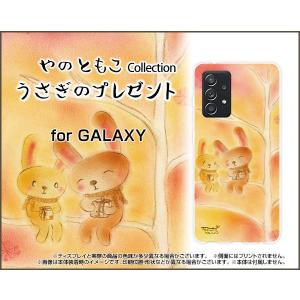 GALAXY A52 5G ギャラクシー TPU ソフト ケース/カバー ガラスフィルム付 うさぎのプレゼント やのともこ デザイン うさぎ 雪の結晶 秋 冬 木 ほっこり