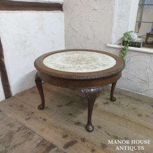 イギリス アンティーク 家具 コーヒーテーブル センターテーブル ガラストップ 猫脚 木製 ウォルナット 英国 SMALLTABLE 6827d