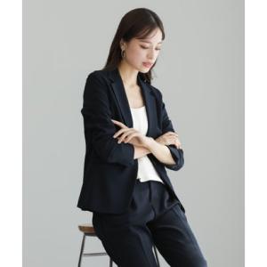 エミリアン Emilyan 【手洗いできるハイストレッチジョーゼット】テーラードジャケット&テーパードパンツ/セットアップスーツ (ネイビー)