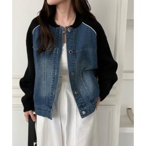 ブルゾン アウター 配色パイピングデニムドッキングブルゾン レディース