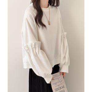 tシャツ 袖タックパール付きスウェットプルオーバー レディース