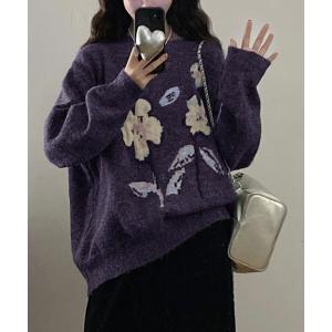 ニット セーター 花柄ジャガードニットプルオーバー レディース