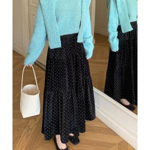 スカート ドット柄ベロアロングスカート