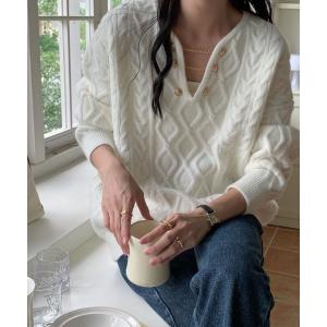 ニット セーター チェンデザインケーブルニットプルオーバー レディース