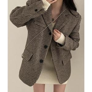 ジャケット テーラードジャケット 千鳥柄テーラードジャケット レディース