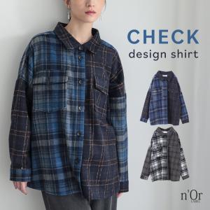 シャツ 長袖 レディース トップス チェックシャツ 羽織 起毛 チェック柄 切り替え レイヤード 重ね着 ゆったり お尻が隠れる 秋 冬「メール便不可」「20」