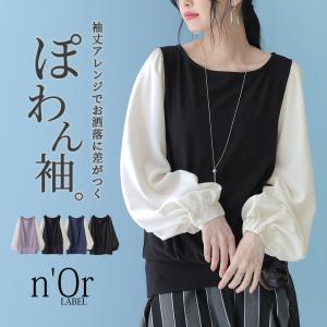 カットソー レディース トップス ブラウス 異素材 配色 長袖 七分袖 六分袖 カジュアル きれいめ※メール便可※【10】