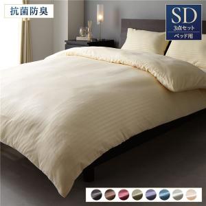 ベッドカバー 3点組 〔セミダブル アイボリー〕 掛け布団カバー ボックスシーツ 枕カバー 抗菌防臭 洗える 〔寝室〕