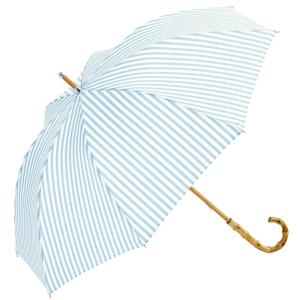 ビコーズ ストライプ サックス 青色 ブルー系 傘 レディース 長傘 雨傘 日傘 UVカット 遮光 晴雨兼用 大きい 丈夫 手開きタイプ