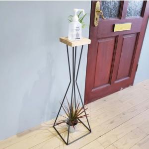 天然木 & アイアン アルコール消毒スタンド 除菌 手洗い消毒 コロナ対策 シンプル 観葉植物 溶接