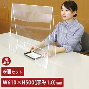 アクリル板 コロナ対策 透明 飛沫防止 大 窓あり 6個セット 幅610mm アクリル パーテーション パネル 感染 感染 予防 卓上 衝立 間仕切り
