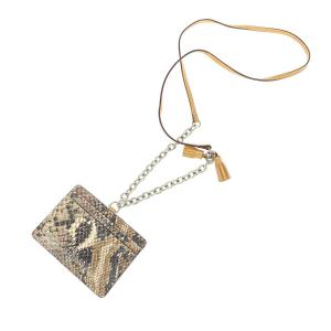 Cole Haan コールハーン ネックストラップ付パスケース タッセル/ロゴ/パイソン型押し/レザー ブラウン ユニセックス