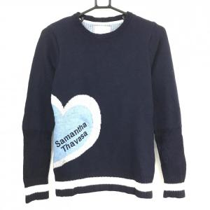 【美品】サマンサタバサUNDER25 セーター ネイビー×白 ハート 袖異素材 ニット レディース M ゴルフウェア Samantha Thavasa