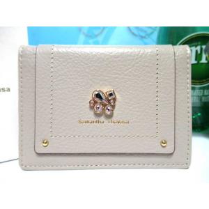 送料無料 サマンサタバサ キラキラ ビジュー付 ロゴ入 牛革 二つ折り パスケース カード入れ 定期入れ グレージュ 新品 証明書付 ギフト包装無料 新生活 お祝い