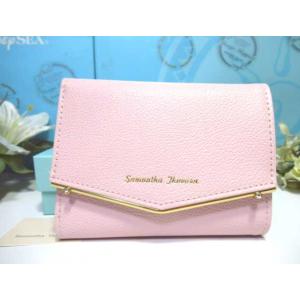 送料無料 サマンサタバサ キラキラ ストーンバー付 シンプル 本牛革 三つ折り財布 折財布 ミニ財布 ピンク 未使用 タグ付 ギフト包装無料 開運 金運up