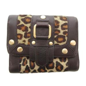 サマンサタバサ Samantha Thavasa Deluxe 三つ折り財布 ハラコ レザー ヒョウ柄 ブラウン ベージュ /UO レディース