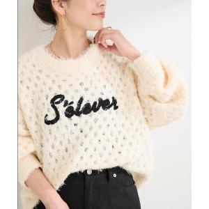 ニット セーター 手洗い可 / フェザーヤーン透かし編みロゴニット レディース