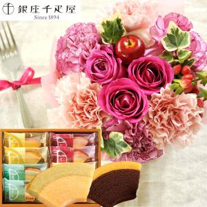 花とスイーツのセット フラワーケーキと【銀座千疋屋】フルーツクーヘンギフトセット 誕生日 記念日 お祝い花 即日発送 あすつく FKAA