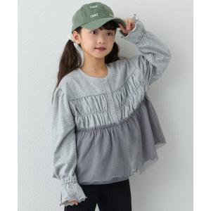 tシャツ 「WEB限定」「KIDS」刺繍オーガンジーレイヤード長袖カットソー キッズ 子供服 女の子