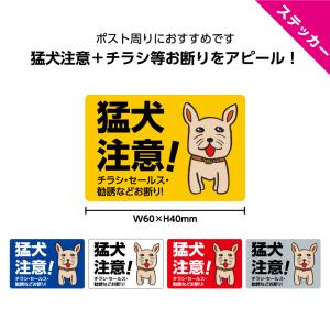 セールス 勧誘 お断り ステッカー シール 猛犬注意 犬 おしゃれ かわいい 訪問販売 チラシ 禁止 dm 投函禁止 動物 小さい 横 シンプル 業務用 W60×H40mm