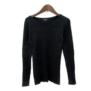 ディーエイチシー DHC ニット カットソー Vネック 長袖 リブ S 黒 ブラック /MN レディース