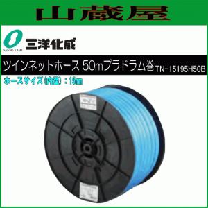 ホース 三洋化成 ツインネットホース 50mドラム巻き TN-15195H50B 15mm(内径) ブルー 給水用 散水用 ねじれ 折れにくい