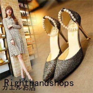 【爆買】パンプス 結婚式 お呼ばれ レディース 黒 ラメ パーティ 入学式 レース ゴールド ストラップ ts-3502 le-7007