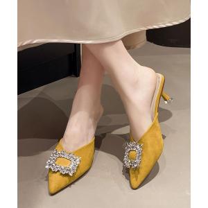 パンプス ビジュー ポインテッドトゥ ミュール パンプス サンダル ハイヒール