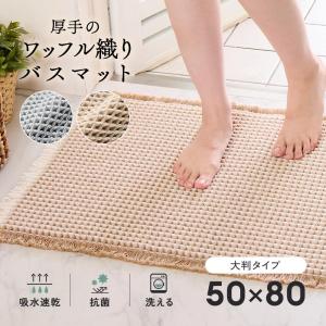 バスマット 大判サイズ 50×80cm 速乾 吸水 ワッフル織り 抗菌 おしゃれ お洒落 厚手 ベージュ グレー 滑り止め付 すべりどめ加工 サラサラ 洗濯機OK 丸洗い
