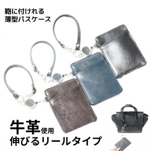 パスケース 定期入れ ICカード メンズ レディース リール 伸びるパスケース 紛失防止 革 レザー 薄型 薄い 2枚 キーホルダー 伸ばせる 箱付き