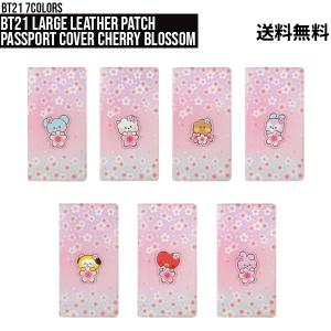 BT21 Large Leather Patch Passport Cover Cherry Blossom【BT21グッズ】パスポートケース 公式グッズ 旅行 旅行グッズ レザー シンプル パスポートカバー