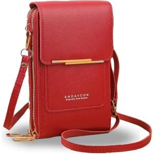 パスポートケース 首下げ スマホポーチ ショルダー レディース 縦型 携帯ショルダー(レッド, 11cmx4cmx18cm)