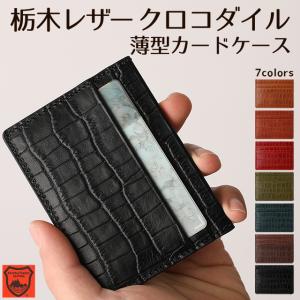 本革 カードケース 栃木レザー クロコダイル 柄 スリム カード入れ 名刺入れ パスケース 薄型 ビジネス おしゃれ かっこいい シンプル メンズ レディース