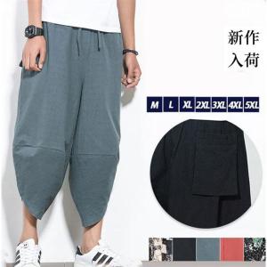 サルエルパンツ メンズ リネン 綿麻 クロップドパンツ ワイドパンツ ズボン チノパン パンツ リラックス カジュアル 父の日 プレゼント ゆったり ウエストゴム
