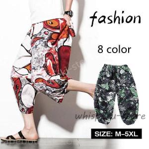 サルエルパンツ メンズ 七分丈 綿麻 花柄 ジョガーパンツ 大きいサイズ ワイドパンツ ルームウェア ファッション ウエストゴム ゆったり ボトムス