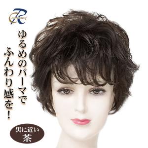 ウィッグ ショート 自然 女性用 ミセス フルウィッグ パーマ レディース 中高年 かつら ブラウン系 黒に近い茶 89802-02a4