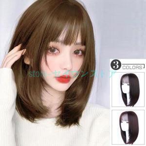 レディースウィッグ wig 小顔効果 ネット付き 耐熱 セミロング ミディアム フルウィッグ 自然 ウイッグ 女性用 ストレート 日常用 舞台 演出