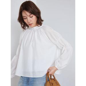 ブラウス シャツ SPONGY クルーネック ギャザー ブラウス レディース