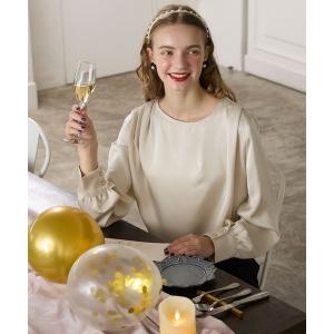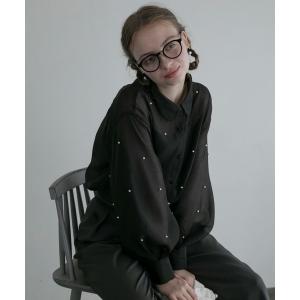 ブラウス シャツ 「BONLECILL noir」パールパフスリーブ丸襟シアーブラウス レディース