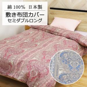 敷き布団カバー 日本製 セミダブルロング 125×215cm 綿100% 大柄 ペイズリー ダマスク クラシカル アンティーク エレガント 上品 高級感 ピンク ブルー