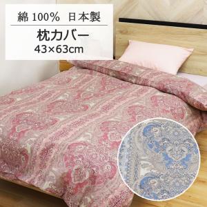 枕カバー ピローケース 日本製 43×63cm 綿100% 大柄 ペイズリー ダマスク クラシカル アンティーク エレガント 上品 高級感 ピンク ブルー
