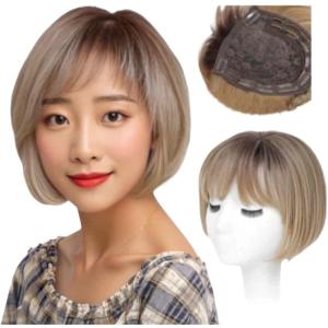 前髪ウィッグ 自然 部分ウィッグ かつら20cm 人毛 トップピース レディース ショート ミディアム 頭頂部 つむじ 分け目 トップカバー ヘアピース