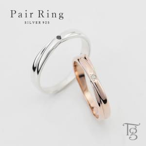ペアリング 刻印 シンプル シルバー &ピンクシルバー 甲丸リング 3mm 外側天然 ダイヤモンド リング 指輪2個 刻印 シンプル