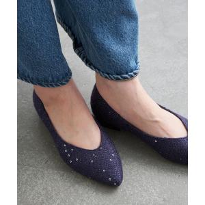 パンプス 本革Vカットフラットシューズ