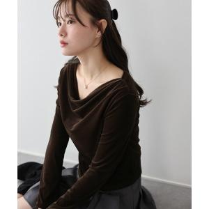 tシャツ ベロアドレープネックトップス レディース