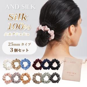 シルクシュシュ セット 3本セット(25mm) シルク100% 6A 25匁 大人っぽい 小さめ シンプル ボリューム ヘアゴム ANDSILK 髪にやさしい ヘアアクセサリー