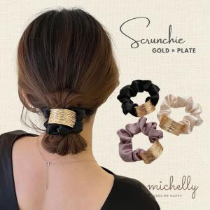 シュシュ プレート ゴールド 大きめ まとめ髪 ヘアアレンジ ヘアゴム ブラック 黒 ホワイト 白 結婚式 きれいめ 大人
