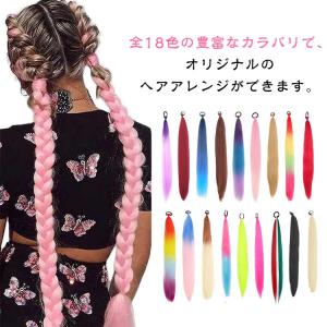 ヒップホップ ヘア 2本セット 子供 付け毛 コーンロウ エクステ 編み込み用 ポニーテール 三つ編み カラフル ダンス グラデーション 編み込み ヘ