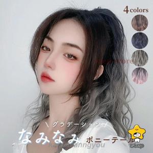 ポイントウィッグ 部分ウィッグ ポニーテール 45cm ロング WIG つけ毛 エクステ 巻き髪 カール ウェーブ グラデーションカラー 自然 ナチュ